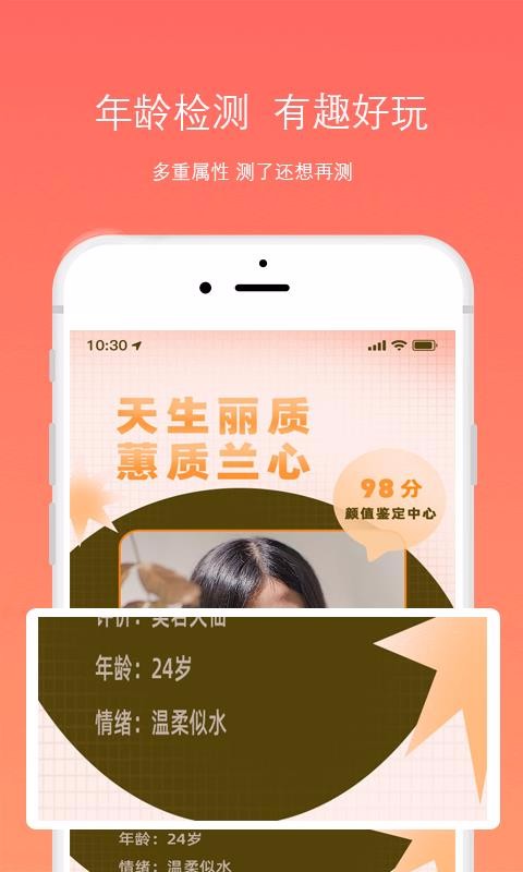 4、有趣又好玩,便捷完成年龄检测、颜值检测等,也了解脸型的多重属性;