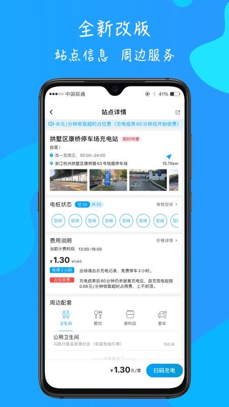 66快充app是一款专为电动汽车的车主提供充电服务的软件,它可以快速的扫描用户周围的环境,并将附近的充电站直观的展现在地图上,用户可自由的进行查看,轻松就可以了解到各个站点的详细信息,包括了电桩状态、费用说明、周边配套、营业时间、电站地址等等,可根据自身的需求,快速选择合适的电站前往充电,解决了用户在电动车电量不足时找不到充电桩的困扰,非常的具有实用性;同时,在选择电站后,会自动的分析电站与用户的位置,为用户智能的规划行驶路线,可跟随路线快速和准确的到达充电站内,不会迷路,带给了用户便利。